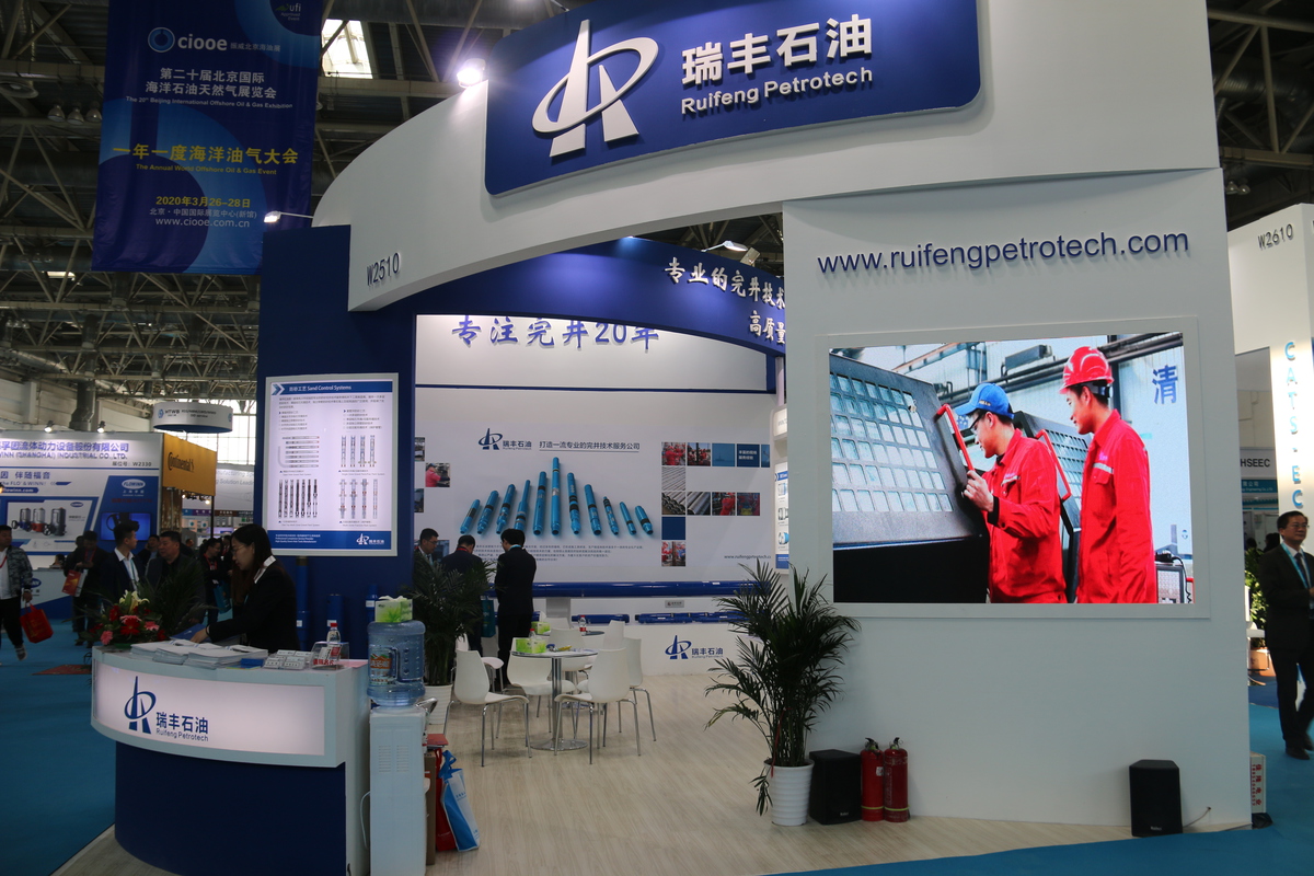 本次展会,瑞丰公司以专注完井20年的核心理念设计展台,展出了7″套管井一次多层挤压循环充填系统及各类筛管产品,水平井分段压裂产品系列,上部完井,恒扭矩、水力振荡器等钻井系列,新型高温高压封隔器、高温注汽封隔器等产品。